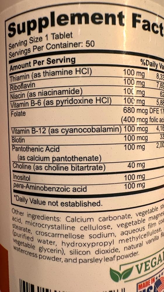 Comprehensive B Vitamin Formula: Our Super B-100 Complex is thoughtfully formulated to provide a wide range of B vitamins in one convenient tablet. With 50 tablets per bottle, you can enjoy long-lasting support for your energy, brain function, and overall well-being.